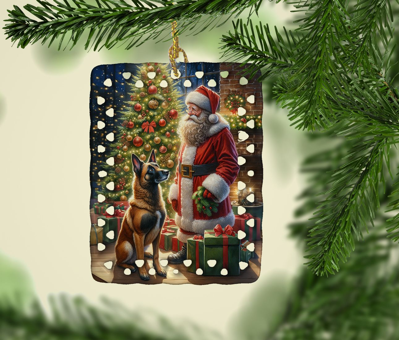 Belgian Malinois and Santa Claus Porcelain Ornament Christmas Tree Hanging Decorations for Home Christmas Holiday, Rectangle, Gift, Multicolor