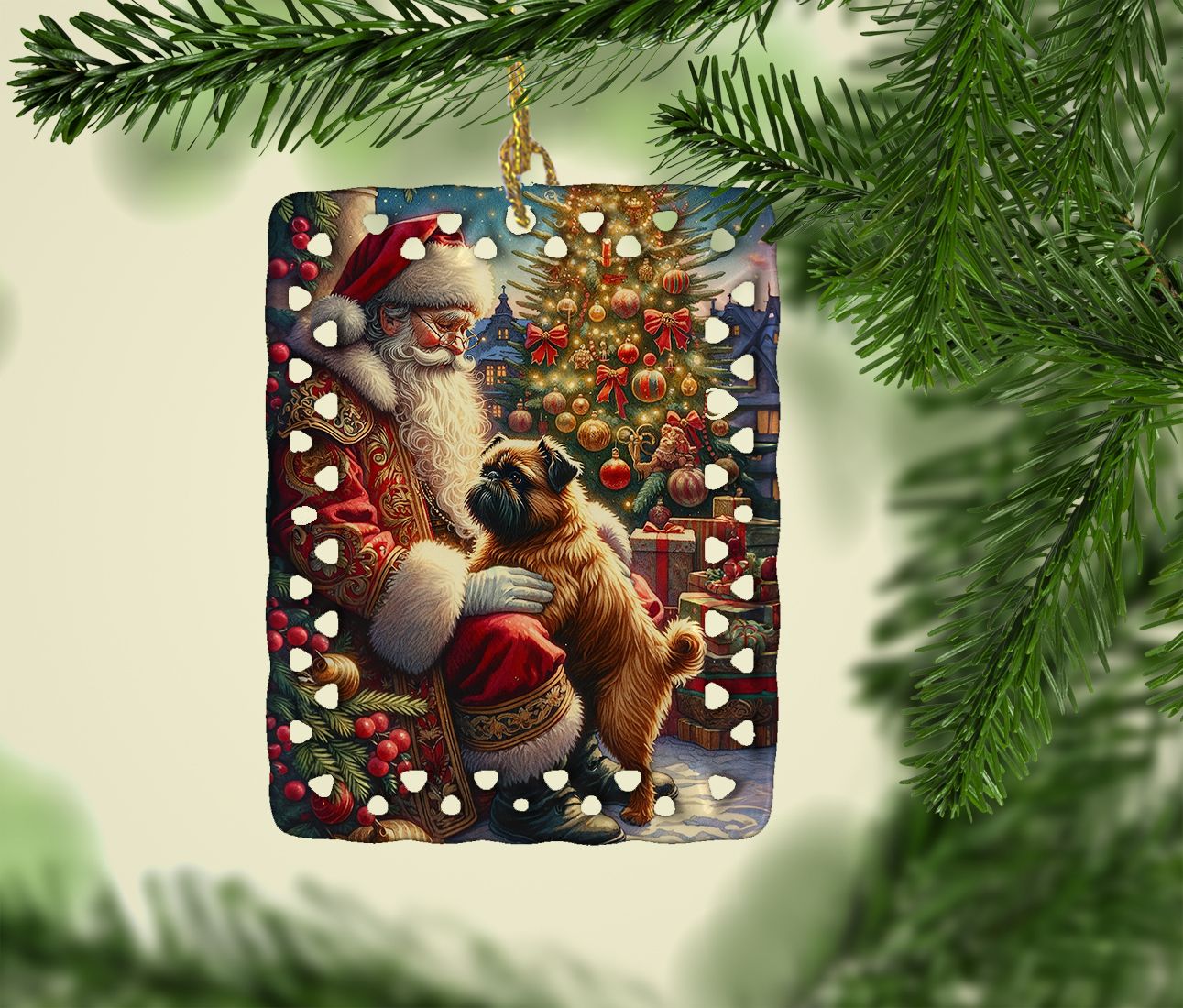 Porcelain Ornament featuring breed specific Brussels Griffon artwork. Celebrate Christmas with this Christmas Ornament. Add a unique, personal touch to your holiday decor with our Rectangular Lattice Porcelain Ornament. Perfect for creating cherished memories, this high-quality ornament shines under festive lights, reflecting warmth and joy throughout your Christmas tree. Crafted with a glossy finish, it showcases vibrant, full-color artwork contributed by our talented artists, ensuring your tree is adorned with a burst of color and holiday spirit. What sets this Porcelain Ornament apart is its customizable white back. Use a paint pen or permanent marker to write a heartfelt message, commemorate a special year, or mark an unforgettable date, turning this ornament into a keepsake that will be treasured for years to come. For best results, allow any personalization to dry thoroughly before handling. Each ornament comes complete with a delicate gold cord, making it easy to hang and display. Proudly made in the USA, this ornament measures 3.375 x 2.625 inches and is a thoughtful gift for pet sitters, teachers, family members, or anyone who would appreciate a little extra holiday magic. Bring style, charm, and a touch of personal meaning to your Christmas tree with this beautifully designed ornament..