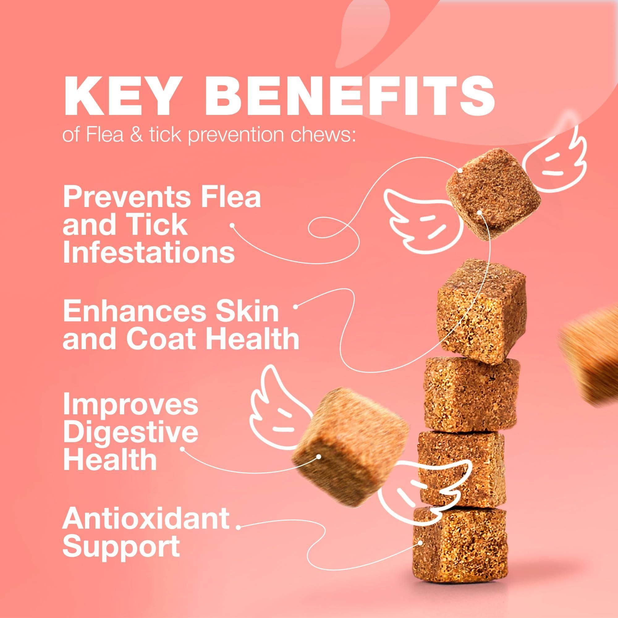 3.natural ingredients: crafted from premium ingredients and fortified with vitamins b1, b6, and b12, our flea chews for cats offer holistic support. boosts immunity and skin health of your pet