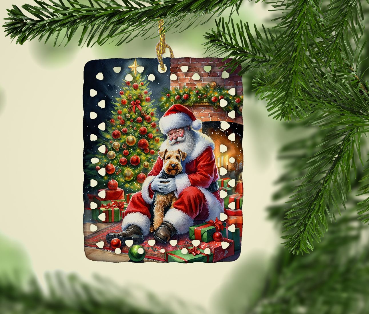 Porcelain Ornament featuring breed specific Lakeland Terrier artwork. Celebrate Christmas with this Christmas Ornament. Add a unique, personal touch to your holiday decor with our Rectangular Lattice Porcelain Ornament. Perfect for creating cherished memories, this high-quality ornament shines under festive lights, reflecting warmth and joy throughout your Christmas tree. Crafted with a glossy finish, it showcases vibrant, full-color artwork contributed by our talented artists, ensuring your tree is adorned with a burst of color and holiday spirit. What sets this Porcelain Ornament apart is its customizable white back. Use a paint pen or permanent marker to write a heartfelt message, commemorate a special year, or mark an unforgettable date, turning this ornament into a keepsake that will be treasured for years to come. For best results, allow any personalization to dry thoroughly before handling. Each ornament comes complete with a delicate gold cord, making it easy to hang and display. Proudly made in the USA, this ornament measures 3.375 x 2.625 inches and is a thoughtful gift for pet sitters, teachers, family members, or anyone who would appreciate a little extra holiday magic. Bring style, charm, and a touch of personal meaning to your Christmas tree with this beautifully designed ornament..