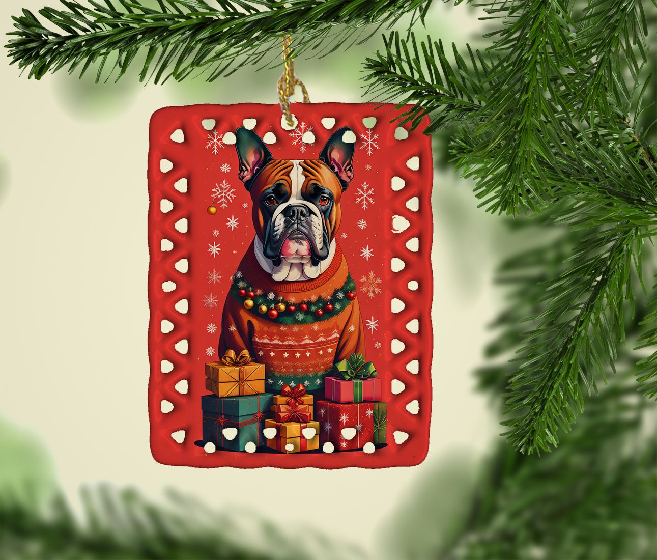 Home > Fawn Boxer Cropped Ears Holiday Christmas Porcelain Ornament Christmas Tree Hanging Decorations for Home Christmas Holiday, Rectangle, Gift
