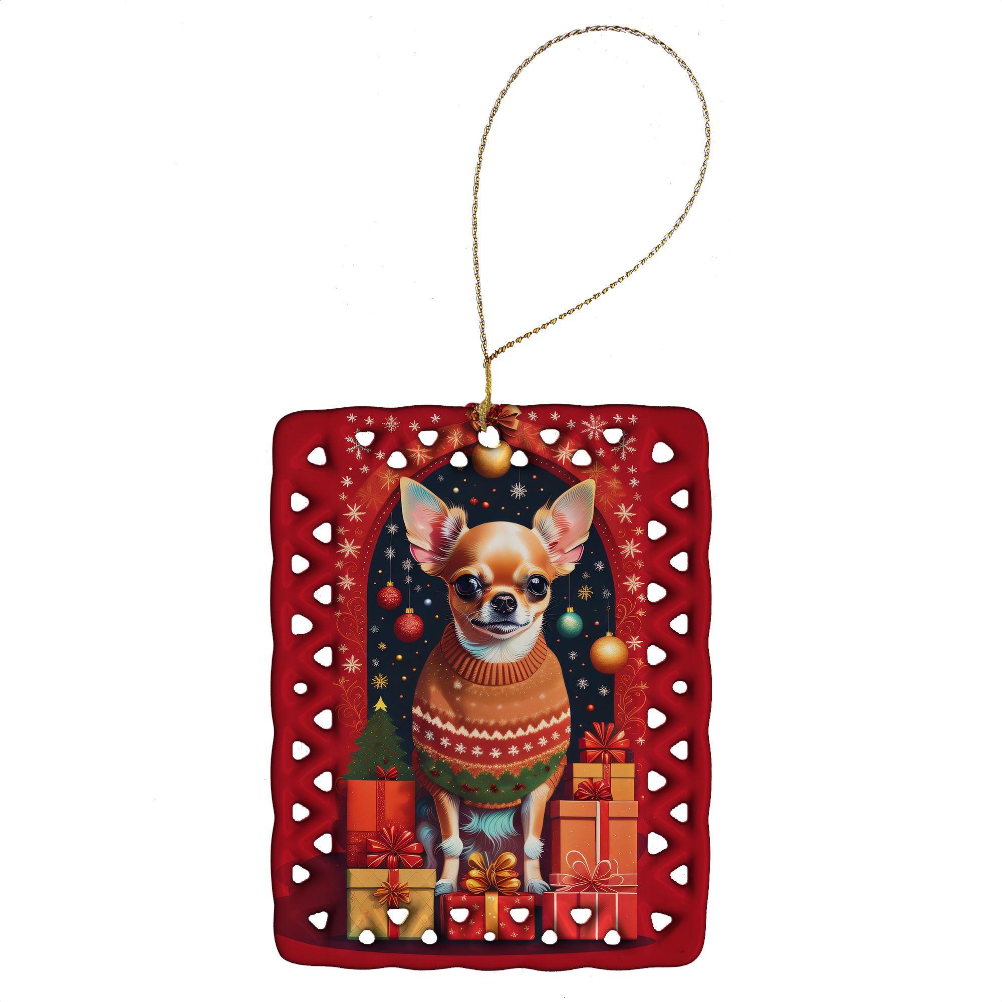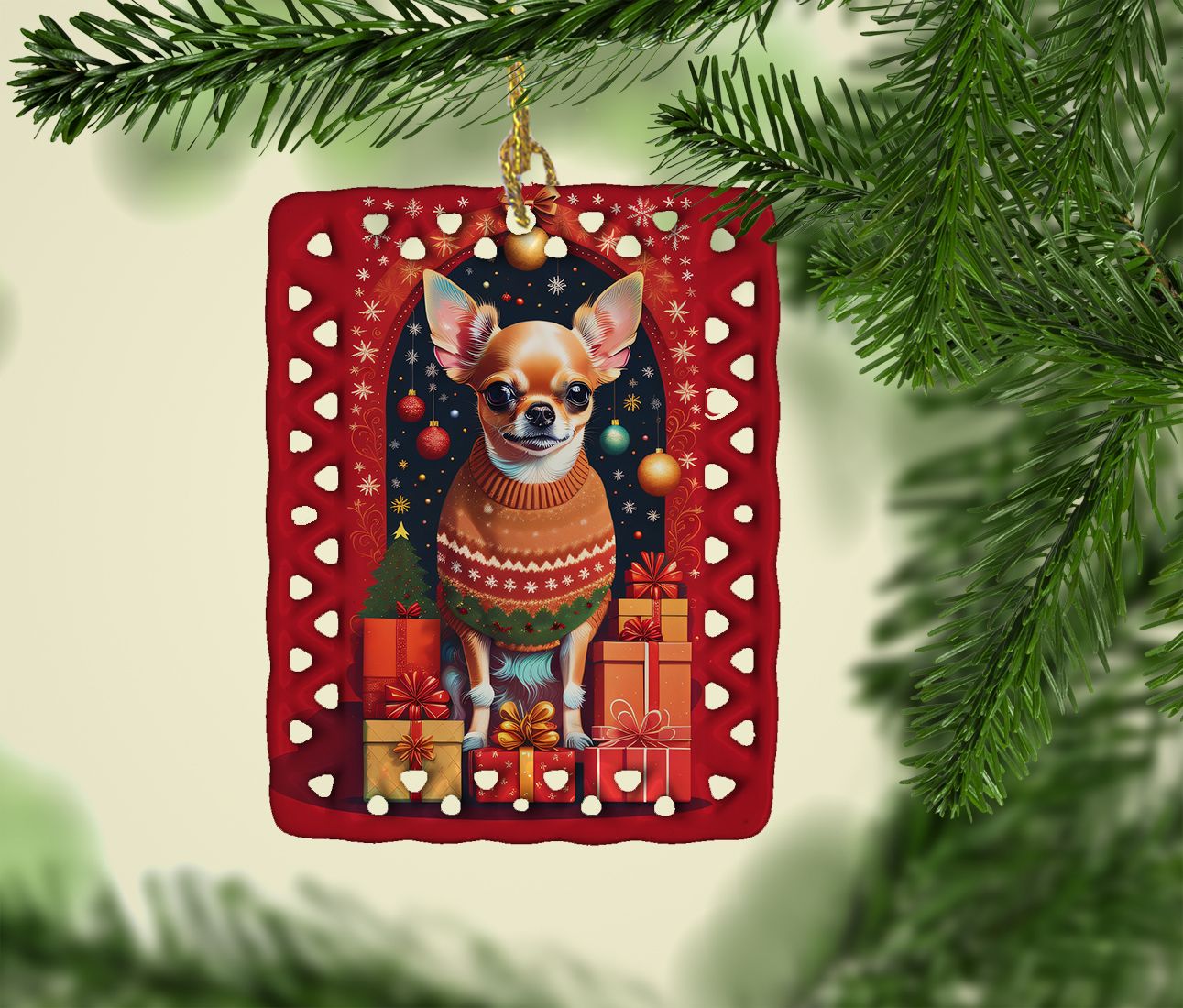 Home > Chihuahua Holiday Christmas Porcelain Ornament Christmas Tree Hanging Decorations for Home Christmas Holiday, Rectangle, Gift, Multicolor