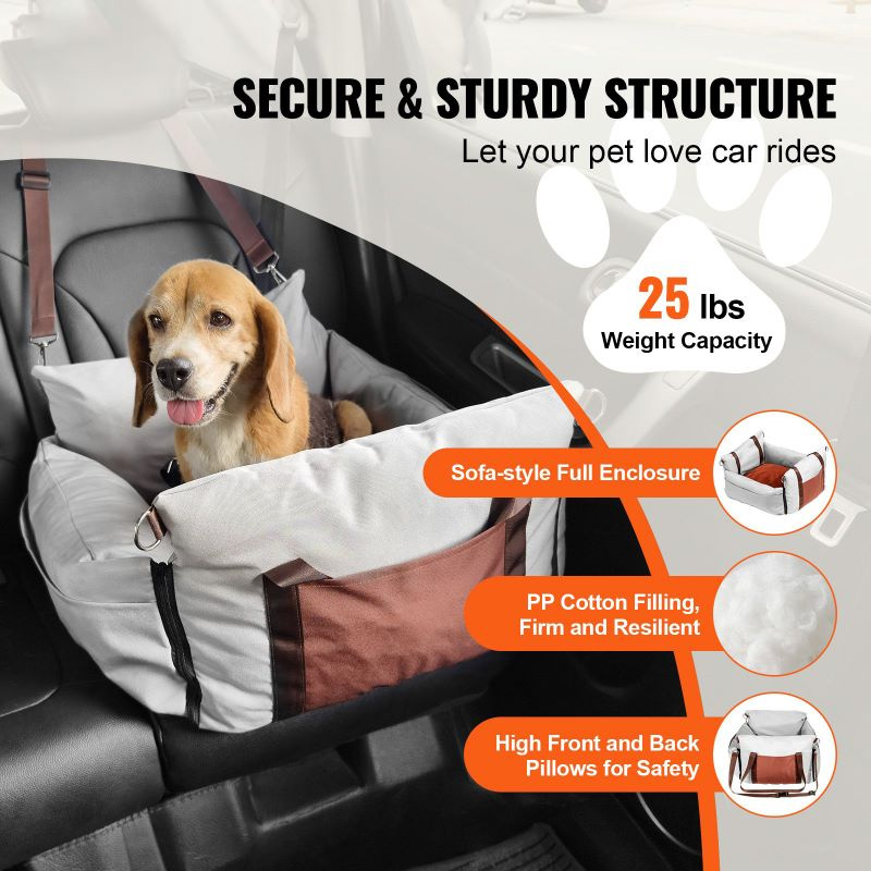 Designed for convenience, this puppy car seat has a fully removable cover and built-in sliding zipper.